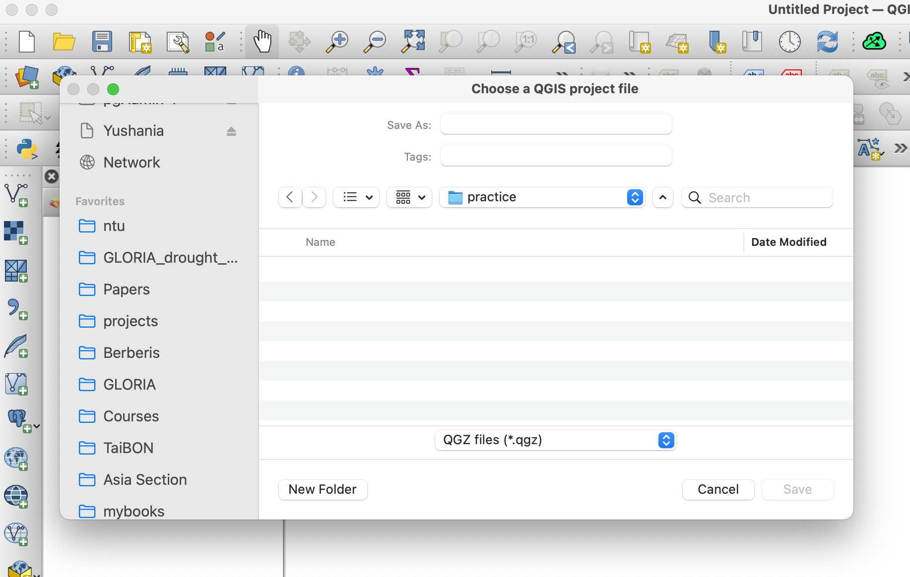請注意:如果要和其他人分享的話,請記得將相關圖層置放在同一個目錄內, 整個壓縮起來分享。只傳.qgz 或.qgs 的檔案的話,其他檔案他人是無法讀到的。 另外一個就是將檔案都封裝儲存在 geopackage 內。
